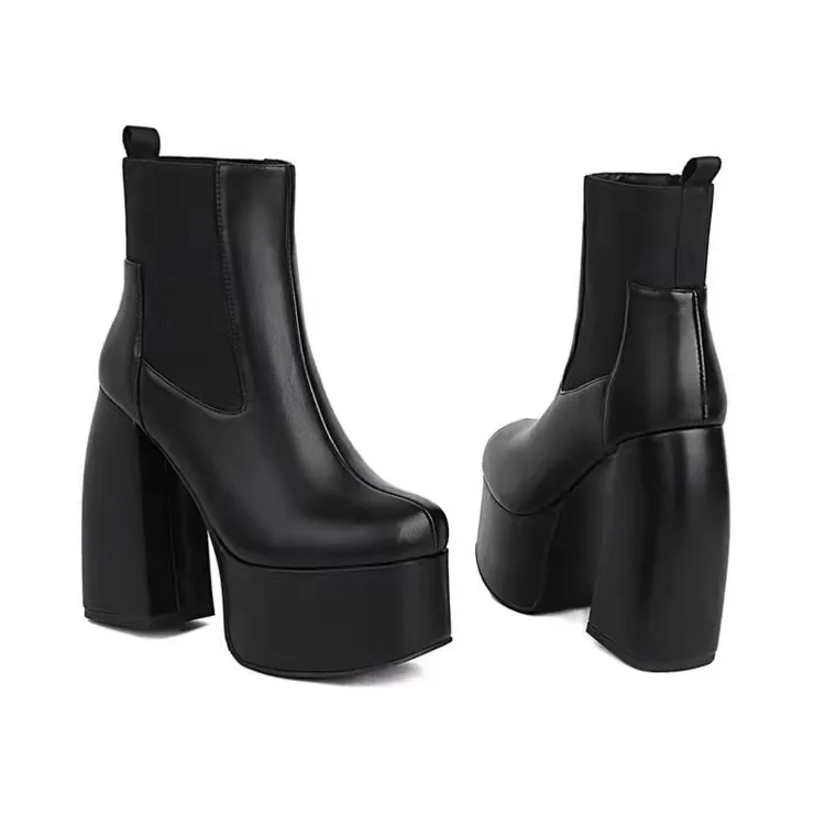 Black Thick High Heel Boot Long Boots For Women Punk Style Autumn Winter Chunky Platform High Gothic Boots Party Shoes Ladies