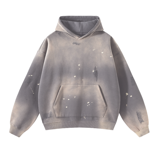 (Ash)Streetwear Unisex Monkey Washed Frayed Effect Hoodie